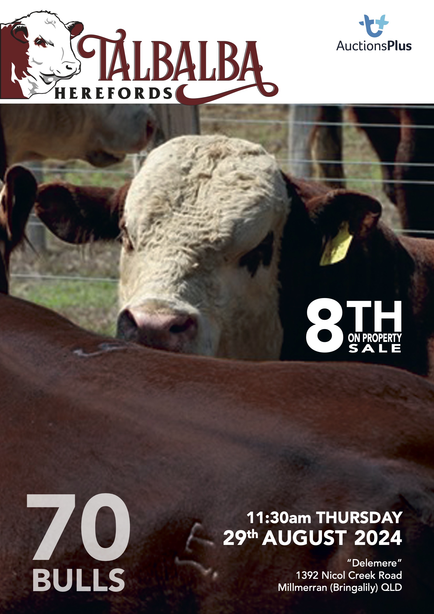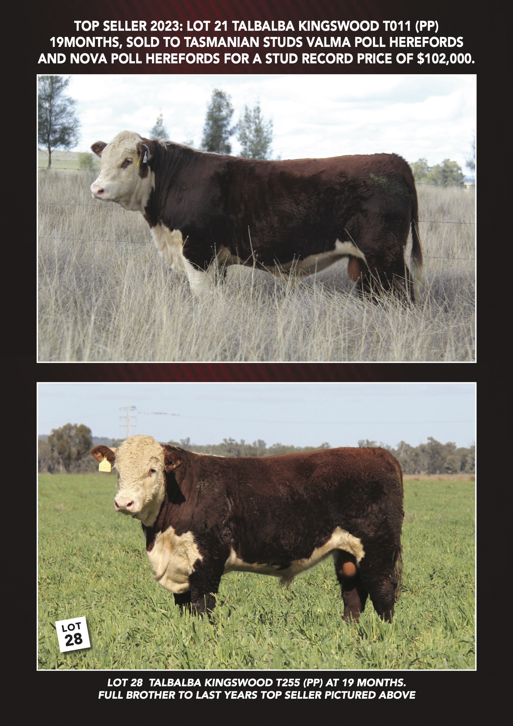 Delemere” 1392 Nicol Creek Road, Millmerran, QLDTop seller 2023 Lot 21, Talbalba Kingswood T011 (PP) @17 mths. Sold for a record Talbalba top price of $102,000.00 to Valma Poll Herefords, Tasmania and Nova Poll Herefords, Tasmania. →