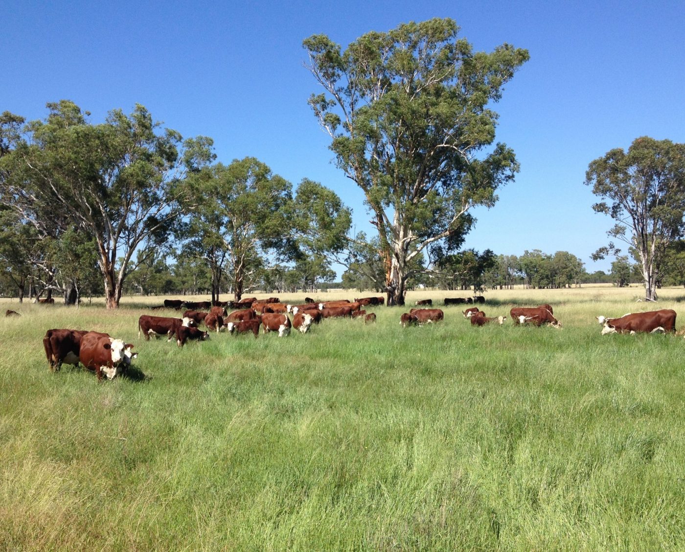 Temperament is also very important in our quest for superior carcase cattle. Research has shown that the best way of increasing meat quality is to select for temperament. We are proud of the fact that we have some of the best muscled Herefords in the country. We have been performance recording our herd since the mid 70’s and believe in the concept of Breedplan. We select from within our own herd on phenotype and history but do use Breedplan as an aid when selecting sires.
